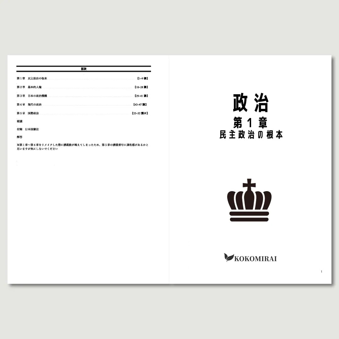 共通テストで〔公共・政治経済〕を選択される方は、こちらのテキストと「経済」「公共-倫理分野-」のテキストを学習していただくことをお勧めしております。